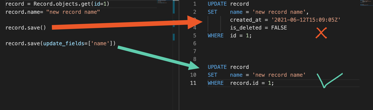 obj.save(update_fields=['field_1', 'field_2']) as opposed to just obj.save()