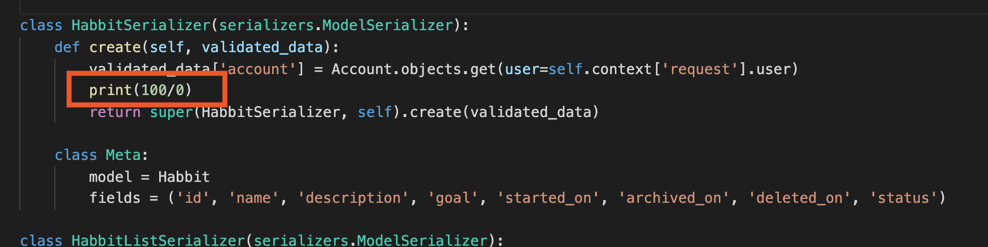I am currently building an app called DailyHabits and I will emulate an error by adding a line of code that divides a number by zero.