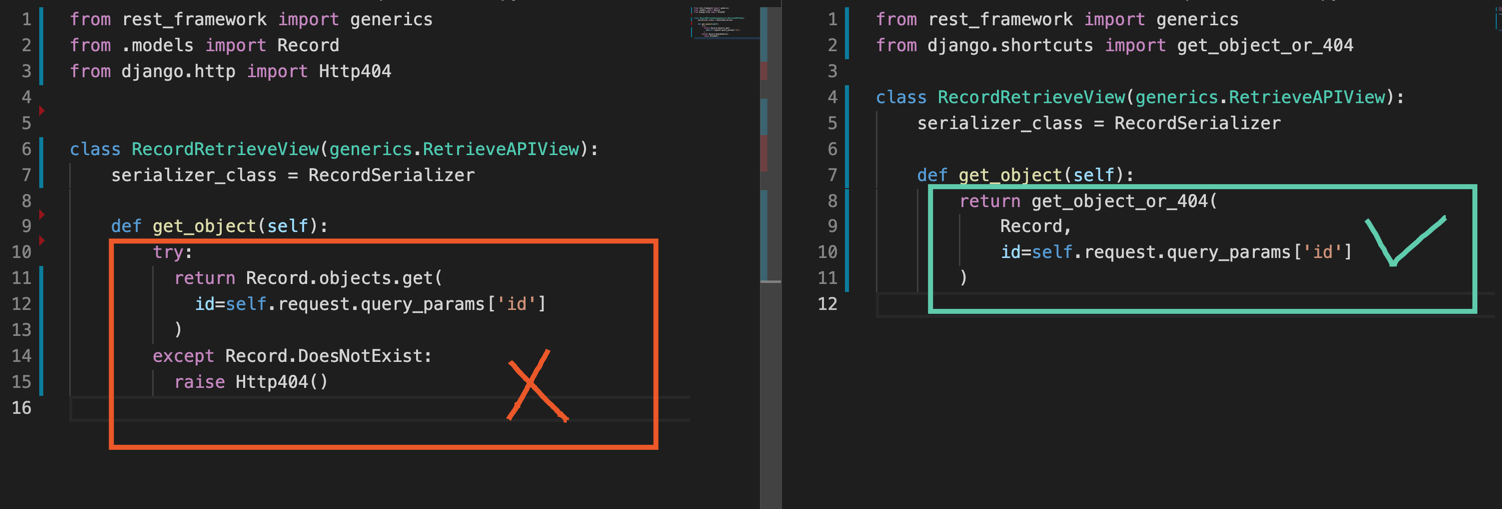 These 4 lines of code can be converted into a single line of code using get_object_or_404: