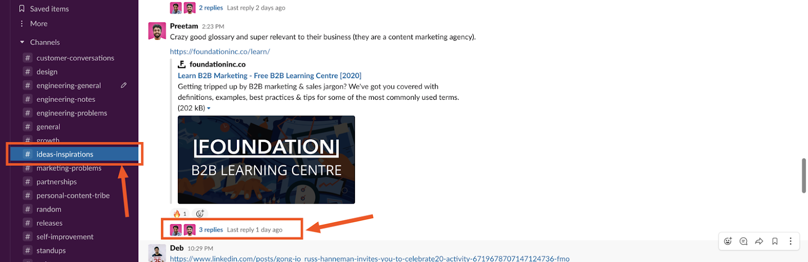 Conversation threading in slack