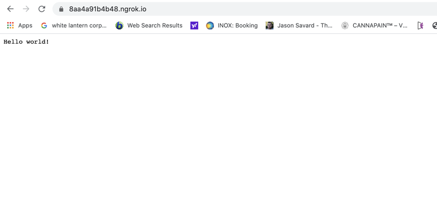 You can now test your webhooks with the public URL derived from ngrok and registering this URL in the 3rd party software that will be calling the webhook.